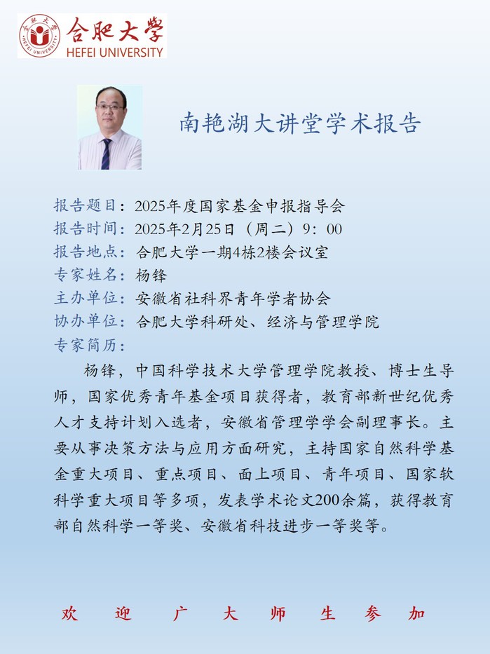【南艳湖大讲堂】2025年度国家基金申报指导会