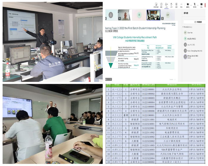 针对“校热企冷”现象,积极推动校企资源共享机制,通过教学与培训场地、实验室与实训中心共享机制,提升企业参与积极性。整合校企双方信息,实现供需精准对接,定期组织校企座谈会,促进高效沟通合作。设立大众学院管理委员会,累计解决校企课程设置、实习实训、师资调配等跨部门问题20余项。实施“双挂”制度,累计邀请28名企业教师担任兼职教师,共同开发《新能源汽车关键技术及应用》《电气控制及PLC应用技术》《工业机器人技术及应用》和《汽车E/E电子电气架构》等19门校企课程。