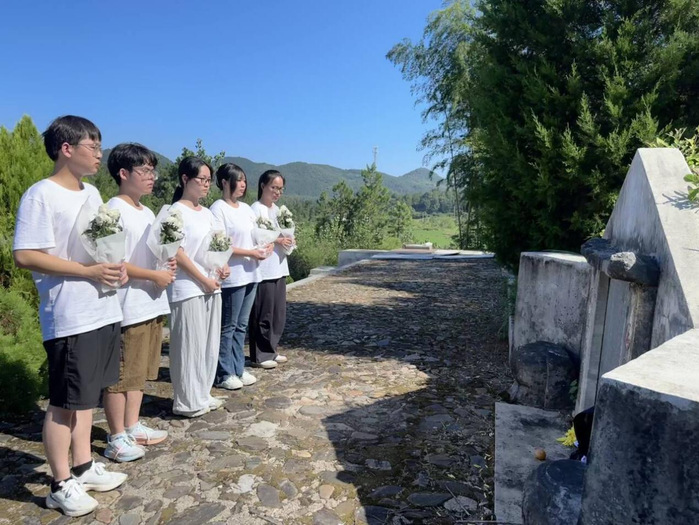 实践队前往黄龙岗新四军抗日殉国烈士墓举行祭奠献花仪式,向131位皖南事变牺牲的指战员致以最高敬意。实践队还奔赴皖南事变烈士陵园,探寻历史脉络,深刻体悟先烈坚守信仰、永不屈服的抗争精神。