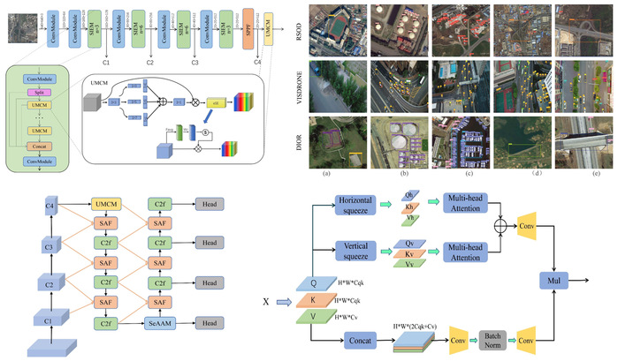 在遥感小目标检测方向,团队针对遥感影像复杂背景干扰和小目标检测难题,提出轴压缩与多路径尺度自适应融合网络(AMSFNet)。该网络设计单向多尺度耦合模块增强小目标特征提取能力,构建轴压缩增强注意力模块聚合全局与局部信息以降低背景噪声干扰,通过多路径尺度自适应融合方法实现大小目标检测平衡。陈岩博士为第一作者,王晓峰教授为通讯作者,ac米兰官方网站人工智能与大数据学院为第一完成单位。(论文标题:Axis-Squeeze and Multirouting Scale-Adaptive Fusion Network for Remote Sensing Images Object Detection,引用链接:https://ieeexplore.ieee.org/document/11121344)