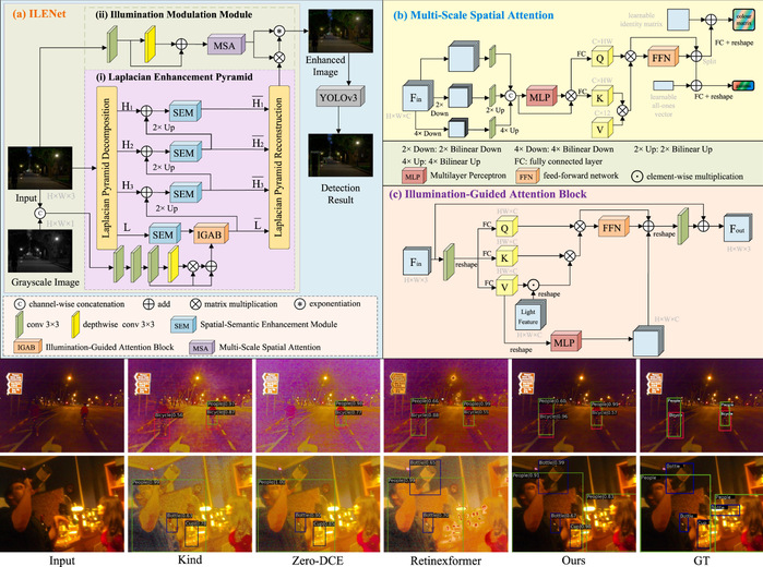 在低光环境目标检测方向,团队提出光照调制拉普拉斯金字塔增强网络(ILENet)。该网络设计 LEP 与 IMM 两大关键组件,LEP 优化低光图像多频率信息以提亮度、IMM 生成语义校正参数以优图像,且与 YOLO 检测器集成形成新框架,采用联合训练平衡增强与检测任务,在低光数据集上达 SOTA(准确率 78.5%),其有效性亦经低光语义分割任务验证。王晓峰教授为第一作者,邹乐教授为通讯作者,ac米兰官方网站人工智能与大数据学院为第一完成单位。(论文标题:ILENet: Illumination-Modulated Laplacian-Pyramid Enhancement Network for low-light object detection,引用链接:https://www.sciencedirect.com/science/article/pii/S0957417425001265)