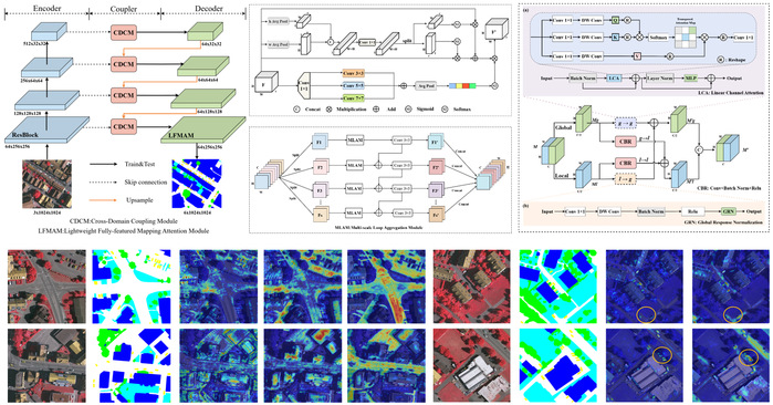 在复杂场景遥感语义分割方向,团队提出轻量级跨域耦合网络(LCCN)。该网络创新性采用“Encoder-Coupler-Decoder”架构,耦合器中通过跨域耦合模块实现多尺度特征提取与全局信息建模,解码器中借助轻量级全特征映射注意力模块捕捉多维度特征交互,优化复杂场景下的语义分割效果。王晓峰教授为第一作者,陈岩博士为通讯作者,ac米兰官方网站人工智能与大数据学院为第一完成单位。(论文标题:Cross-Domain Coupling Network With Lightweight Fully Featured Mapping and Loop Aggregation for Semantic Segmentation of High-Resolution Remote Sensing Images,引用链接:https://ieeexplore.ieee.org/document/11129080)