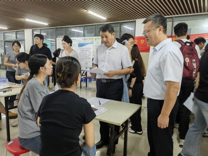 走访过程中,白义香还特别关注学生的求职情况,与正在应聘的学生进行亲切交谈,详细询问他们的求职意向、职业规划以及在简历制作、面试技巧等方面遇到的问题和困惑。他鼓励毕业生既要扎根专业,把在校所学的理论知识学深悟透,打牢职业发展的基本功;也要主动破圈,多关注行业动态与企业需求,敢于尝试,在实战中提升解决问题的能力;更要放平心态,把第一份工作当作成长的练兵场,既不盲目追求高薪高位,也不畏惧基层岗位的挑战,在踏实奋斗中找到适合自己的职业方向。