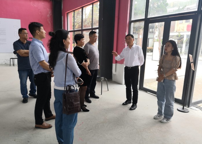 5月28日下午,合肥市政协副主席、设计学院院长谢海涛率队到七里站街道长江180艺术街区调研,并召开座谈会。设计学院党委书记宣跃文等陪同。