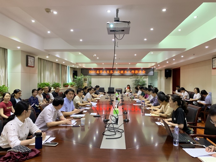 6月3日下午,教育部2021届高校毕业生就业工作第三次调度视频会召开。ac米兰组织各二级学院党委副书记、学工办负责人、就业工作联络员、毕业班辅导员、专业班主任在行政楼九楼西会议室参加了会议。