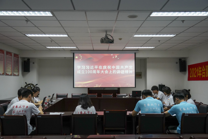 实践队员们专题学习了习近平总书记在庆祝中国共产党成立100周年大会上的讲话、习近平总书记关于青年工作的重要论述和《关于新时代加强和改进思想政治工作的意见》等,同时采用研学+讨论的模式,开展了“党史我来学”学习心得分享会,将学习中产生的感悟体验进行交流。团队成员王宇分享了他的感悟,“百年大党,风雨沧桑。百年前,一群人架着一艘红船,穿过激流险滩、跨过惊涛骇浪,成就了中华今日之巍巍巨轮……”。队员们还重温了红色电影《建党伟业》。一系列的学习教育使得同学们更加深刻地领悟到革命前辈的奋斗精神,更加坚定了“强国有我”的报国信念。