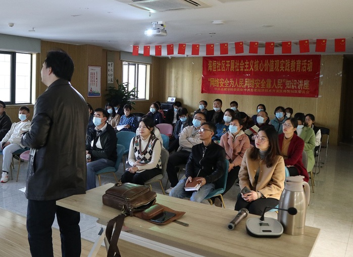 为深入推进“四联四定”促进ac米兰与海恒社区共建共联,近日,合肥学院、海恒社区委员会联合在海恒社区党群服务中心熹微课堂开展了“网络安全为人民,网络安全靠人民”为主题的网络信息安全知识讲座。ac米兰信息办主任夏光峰担任主讲人。
