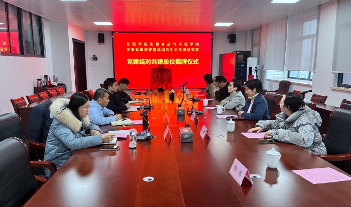 为切实推动党建工作创新,不断提高党建引领事业发展能力,增强师生党员服务社会能力,1月7日,生物食品与环境学院、巢湖管理局湖泊生态环境研究院(巢湖研究院)举行党建结对共建单位揭牌仪式。巢湖研究院党支部书记、副院长唐晓先,巢湖研究院总工程师万能胜,环境科学研究室副主任高芮,科研管理部副部长韩琦,生物食品与环境学院全体党委委员、环境工程系教师及学生党支部书记参加仪式。仪式由唐晓先主持。