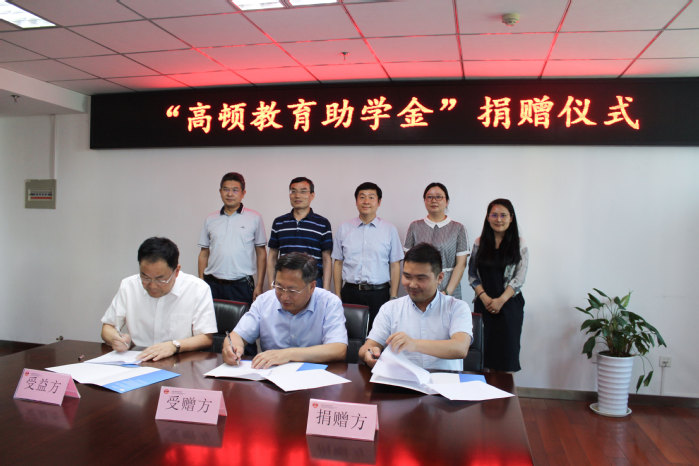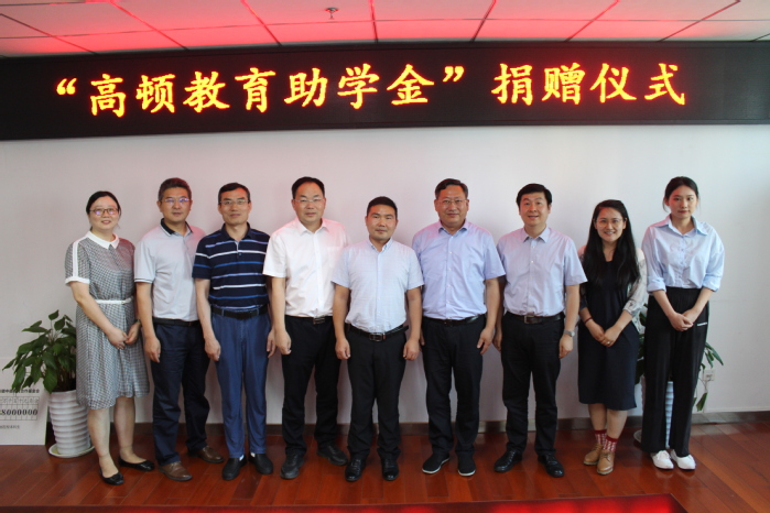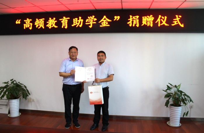何世昆代表基金会向高顿教育颁发捐赠证书,并赠送基金会特色宣传用品。