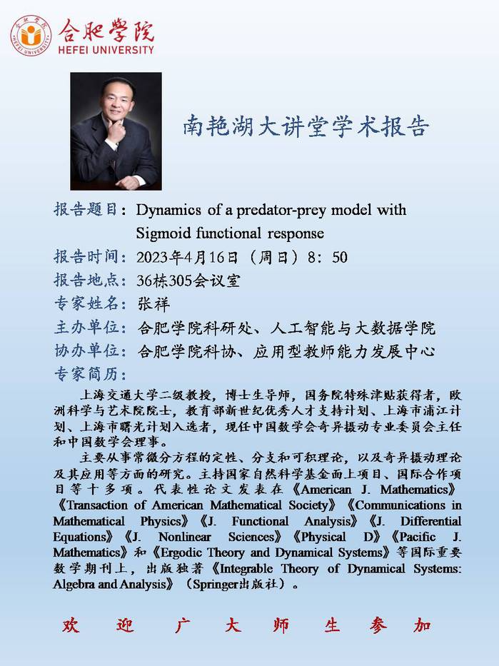 【讲座预告】Dynamics of a predator-prey model with Sigmoid functional response