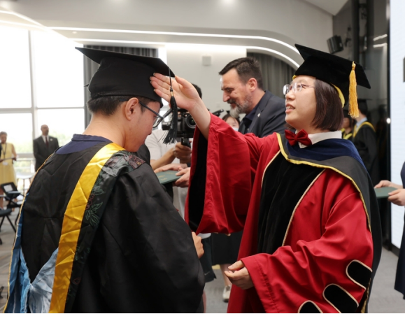 The morning of June 16, 2022 sees the graduation ceremony at Volkswagen Anhui of the first batch of “Seed Engineers” jointly trained by HFU and Volkswagen Group China. Wu Chunmei, HFU President, attends the ceremony together with Mr. Jens Pfitzinger, Volkswagen Group Executive Vice-president and Dr. Gabardi, CEO of Volkswagen Anhui.