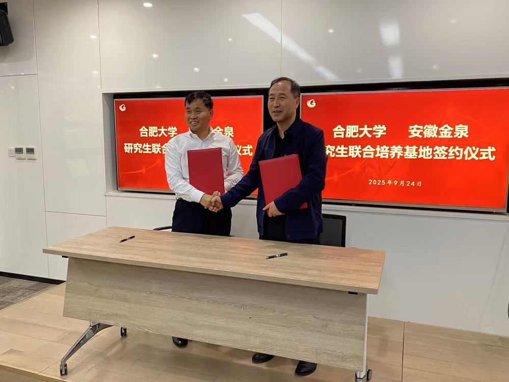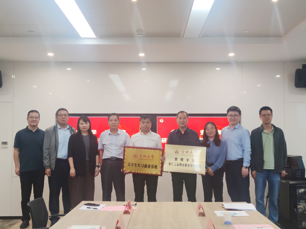 为提高会计专硕研究生人才培养质量,深化产教融合,拓展研究生“双导师制”的培养内涵,2025年9月24日,管理学院院长宋玉军率队赴安徽金泉集团举行会计专硕研究生实习基地授牌仪式。金泉集团董事长庄恒书、金泉会计师事务所副总经理孙建军,及金泉集团所属事务所、管理咨询等部门负责人参与座谈,学校财务处副处长唐艳、学院教学办主任袁宏稳、会计专硕点负责人云坡等共同出席。