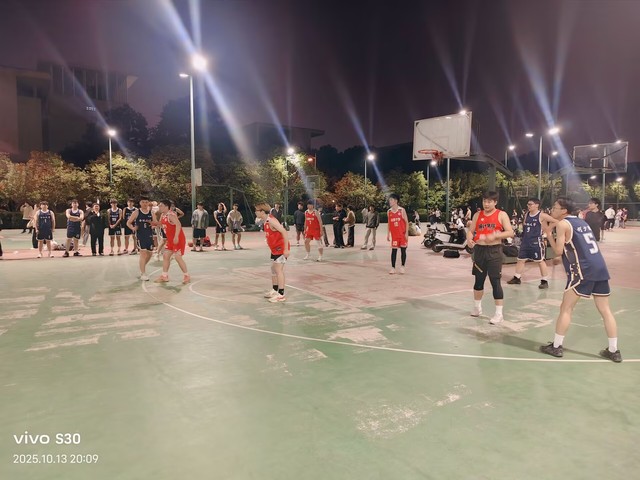 10月13日晚,场外的秋风已然带上了凛冽的寒意,像清凉的泉水,无声地漫过街道。路灯的光晕在寒风中显得孤寂而清冷。然而,篮球场上却完全是另一番天地。汗水砸在滚烫的地板上瞬间蒸发,肌肉的碰撞声、球鞋的摩擦声、观众的呐喊声,汇聚成一股灼热的气浪,将秋夜的寒凉彻底隔绝在外。一场精彩的男篮赛事在一期一号篮球场火热展开,对战双方分别是生物院男篮和设计院男篮。生物院与设计院男生篮球联赛在此上演巅峰对决。经过60分钟激烈争夺,生物院以66:29击败设计院,取得本次比赛胜利。