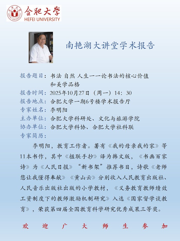 【南艳湖大讲堂】书法 自然 人生一一论书法的核心价值和美学品格