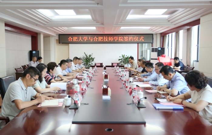 6月24日,ac米兰与安徽合肥技师学院签约暨人才联合培养基地揭牌仪式在行政楼九楼东会议室举办,合肥市副市长何逢阳,合肥市人力资源与社会保障局党组书记、局长徐生彬,党组成员、副局长任清智,安徽合肥技师学院党委书记、院长程长风,党委委员、副院长姜玉茹,ac米兰党委副书记、校长任永,党委委员、副校长王晓峰出席仪式,仪式由王晓峰主持。