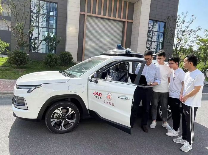 智能网联汽车研究团队正在进行车辆测试。学校供图